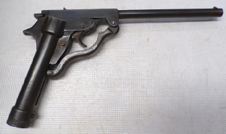 VERY SOLIDLY MADE COMPLETE AND WORKING METALWORK APPEARS TO HAVE BEEN REFINISHED AS IT A BIT WISHY WASHY ORIGINAL OPEN SIGHTS ALSO HAS THE LITTLE SCREW OUT SCREW DRIVER AT THE BACK FOR TRIGGER/SIGHT ADJUSTMENT. A SOLID AND USEABLE PISTOL.