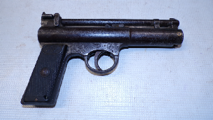 A NICE LITTLE PISTOL PLEASANT TO SHOOT, NOT PARTICULARLY ACCURATE OR POWERFUL, THIS EXAMPLE IS IN FAIR CONDITION SOME WEAR TO THE FINISH BUT COCKS AND SHOOTS PERFECTLY, ACTUALLY A NICE LITTLE PISTOL