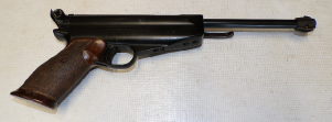 THIS IS A VERY NICE CONDITION PISTOL WITH LOTS OF FINISH ON IT, ALL THE MARKINGS ARE CLEAR AND ALL COMPONENTS WOULD SEEM TO BE ORIGINAL COMPLETE AND SOUND. WE HAVE PLACED IT IN TO ONE OF OUR SUPERB REPRODUCTION BOXES WITH AN EMPTY PELLET BOX SIMILAR TO HOW IT WOULD HAVE BEEN SUPPLIED WHEN IT WAS NEW. A NICE COLLECTOR’S ITEM AND ACTUALLY A VERY EARLY SECOND SERIES.