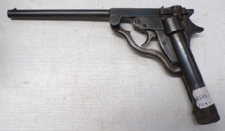 THIS IS THE BEST QUALITY PISTOL THAT WEBLEY EVER PRODUCED, THIS EXAMPLE IS IN VERY GOOD CONDITION RETAINING LOTS OF ITS ORIGINAL NICE BLUE/BLACK FINISH. THERE IS SOME SLIGHT PITTING AND MARRING OF THE SURFACE