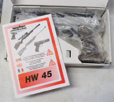 THIS HW45 SILVER STAR PISTOL IS BOXED IN LIKE NEW CONDITION WITH INSTRUCTIONS. A VERY ACCURATE SPRING POWERED PISTOL.