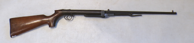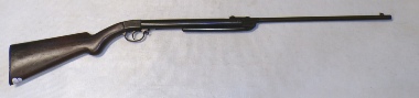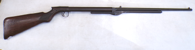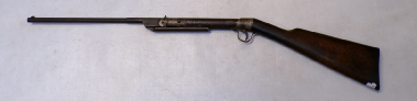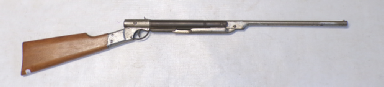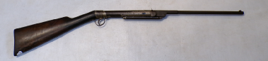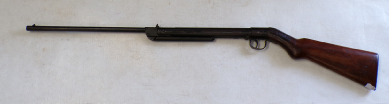 VERY LOW POWERED NEEDS A NEW SPRING. METALWORK BLACK TO BROWN GRAINY, NON ORIGINAL REAR SIGHT, STOCK HEAVILY VARNISHED OVER SURFACE MARKS BUT OTHERWISE COMPLETE. LITTLE BIT LOOSE AT THE BARREL JOINT. NOT A MODEL OF AIR RIFLE THAT WE HAVE EVER HAD A LOT OF. MODEL NAME CLEARLY ON TOP OF THE CYLINDER.