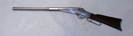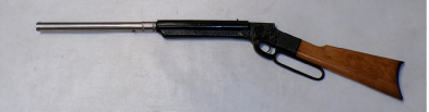 THIS IS A REALLY NICE QUALITY BB GUN AS FAR AS WE ARE AWARE IT WAS ONLY PRODUCED FOR A YEAR IN 1898 BEFORE IT WAS REPLACED BY THE 1899 MODEL. WE UNDERSTAND THIS IS A 1000 SHOT REPEATER ALTHOUGH WE ARE NOT SURE HOW TO LOAD IT, THERE IS A HOLE IN THE TOP AND A BB COULD BE MUZZLE LOADED THERE IS A KNURLED SECTION JUST AHEAD OF THE CYLINDER BUT IT DOES NOT SEEM TO WANT TO MOVE. HOWEVER THE LEVER ACTION WORKS#. THE GUN IS IN SUPERB CONDITION RETAINING VIRTUALLY ALL ITS JAPANNED OR PAINTED BLACK FINISH. THIS WAS PART OF THE ROBERT BEEMAN COLLECTION AND IS PICTURED IN THE BLUE BOOK OF AIRGUNS AND WE BELIEVE IN MOST EDITIONS. THIS WOULD HAVE BEEN A SUPERIOR QUALITY AIRGUN BACK IN THE DAY IT COST AN AWFUL LOT MORE THAN THE EQUIVALENT DAISY’S AND OTHER MODELS SO IT WOULD HAVE BEEN A RICH BOY OR VERY LUCKY ONE WHO HAD THIS AS HIS BB GUN. RETAINS MOST OF ITS ORIGINAL NICKEL PLATING TO THE BARREL OBVIOUSLY HAD VERY LITTLE USE . A NICE QUALITY COLLECTOR’S ITEM.