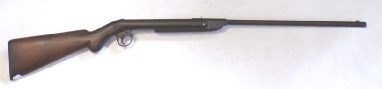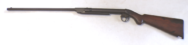 THIS IS AS NEAR AS YOU GET TO A STANDARD GEM MODEL IE HALF OCTAGONAL BARREL DOLLS HEAD TYPE CATCH WITH A REAR SIGHT IN FRONT OF IT. WE DID ONCE SEE A COLLECTION OF 50 GEMS ALL OF WHICH WERE DIFFERENT TO EACH OTHER IN SOME WAY SO THERE IS AN AWFUL LOT OF VARIATION OF THIS WE RECALL THE MOST COMMON MODEL. THIS EXAMPLE IS IN FAIR CONDITION RETAINING SORT OF BROWN ORIGINAL FINISH, STOCK HAS NOT BEEN RUBBED DOWN, NICE AND TIGHT AT THE BREECH WITH A GOOD BARREL CLOSURE, ALL ORIGINAL COMPONENTS BASICALLY JUST A PRETTY STANDARD MODEL IN HONEST CONDITION ALTHOUGH THE REAR SCREW THAT TIGHTENS UP THE CYLINDER WOULD APPEAR TO BE THE WRONG ONE PROBABLY TOO LONG COULD EASILY BE SHORTENED WE THINK. THERE ARE NO MARKINGS/SERIAL NUMBER VISIBLE. WE HAVE SOLD HUNDREDS OF THESE OVER THE YEARS THEY ARE AN INTERESTING DESIGN THAT WAS ONCE VERY COMMON AND IN FACT PROBABLY THE MOST CHEAPEST AIR RIFLE OFFERED FOR SALE AT THE TIME BEFORE WAR NUMBER 1.