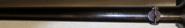 What a fantastic lump of an antique airgun. This is beautifully made, very heavy, very solid. It is a strike pump gun which basically consists of a spring and piston within the butt that is cocked and uses two leaf springs. The mechanism works but it takes a lot of effort to cock those two leaf springs and the power output is not great. This would have been used for shooting darts at very close range. The barrel is massive being fully octagonal and about an inch in thickness. With its original fully adjustable rear sight which is a lovely bit of mechanics and a very nice fine post front sight within an open shroud. This has a double set trigger mechanism, you cock the back trigger and then the front trigger is truly a hair mechanism. The airgun is in good condition with the barrel being mostly brown finish. The stock is nice but with one major crack on the underside that looks to have been repaired but is structurally perfectly sound. massive cast heavy butt plate and very fancy trigger guard allowing you to hold it with all your fingers comfortably. This really is a nice quality item. No engraving, the metal work is plain and the woodwork is plain apart from a heavy large Tyrolean cheek piece and some sort of oak leaf carving on the front end. A really nice antique. Also it is complete with what we believe to be its original cocking handle. Overall length is about 44” and weighs more than we can weigh with our 5kg postal scales!