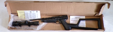 RIGHT HANDED WALNUT STOCK, IN PERFECT AS NEW CONDITION BOXED WITH INSTRUCTIONS.