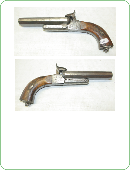 Pinfire, Spanish made possibly, c1860s, mechanism only half working, c14mm bore.NOTE: The hammer on one of the mechanisms is broken.