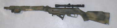 THIS RIFLE HAS BEEN “MILITARISED” WITH SOME SORT OF RED TORCH MOUNTED ON THE END AND A 4 X 20 SCOPE.