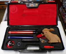 THIS SINGLE STROKE PNEUMATIC PISTOL IS IN EXCELLENT AS NEW CONDITION AND IS PRESENTED IN A NICE CLOSING WOODEN BOX WITH SOME JSB PELLETS. COCKS AND SHOOTS EXACTLY AS IT WOULD HAVE DONE WHEN BRAND NEW WHICH IS WHAT IT LOOKS LIKE NOW.