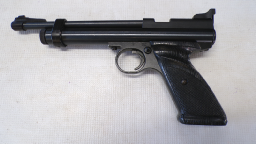 THIS IS THE VERY LAST VERSION OF THE LONG LIVED WEBLEY JUNIOR PISTOL. THIS MARK 2 IS THE ONLY ONE WITH A USUALLY RIFLED BARREL WHICH THIS ONE HAS. IT IS IN NEAR NEW CONDITION, COCKS AND SHOOTS PERFECTLY OBVIOUSLY HAVING HAD LITTLE OF NO USE.