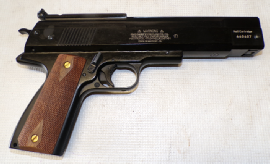 THIS IS THE BEST QUALITY PISTOL THAT WEBLEY EVER PRODUCED, THIS EXAMPLE IS IN VERY GOOD CONDITION RETAINING LOTS OF ITS ORIGINAL NICE BLUE/BLACK FINISH. THERE IS SOME SLIGHT PITTING AND MARRING OF THE SURFACE