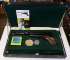 This is a very interesting and well done CUSTOM VERSION OF A CP1 PISTOL. THE GRIPS HAVE BEEN MODIFIED, THE BARREL HAS AN OCTAGONAL BRASS SLEEVE OVER PRESUMABLY THE ORIGINAL BARREL. CUSTOM MADE BRASS TRIGGER GUARD AND A DUMMY HAMMER AT THE BACK GIVING AN OVERALL EFFECT OF SOMETHING LIKE A DUELLING PISTOL OR SOMETHING LIKE THAT. LOOKS VERY GOOD, SHOOTS REALLY WELL, GOOD CONDITION, IN ITS ORIGINAL BOX WHICH SHOWS WHAT THE PISTOL WOULD HAVE LOOKED LIKE ORIGINALLY.