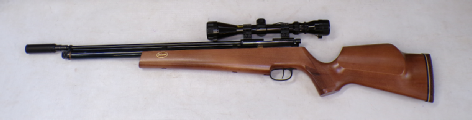 THIS IS A GOOD RELIABLE ROBUST PRE CHARGED RIFLE, THIS EXAMPLE IS IN NEAR NEW CONDITION IN ITS ORIGINAL BOX WITH INSTRUCTIONS. ALSO WITH 4 10 SHOT MAGS. FITTED WITH A HAWKE 4X40 SCOPE AND A BIPOD . A NICE ENTRY LEVEL HUNTING RIFLE IN VERY GOOD CONDITION.