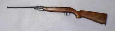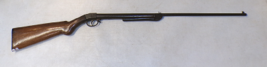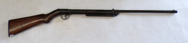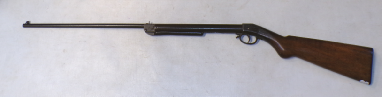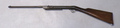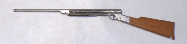 VERY LOW POWERED NEEDS A NEW SPRING. METALWORK BLACK TO BROWN GRAINY, NON ORIGINAL REAR SIGHT, STOCK HEAVILY VARNISHED OVER SURFACE MARKS BUT OTHERWISE COMPLETE. LITTLE BIT LOOSE AT THE BARREL JOINT. NOT A MODEL OF AIR RIFLE THAT WE HAVE EVER HAD A LOT OF. MODEL NAME CLEARLY ON TOP OF THE CYLINDER.