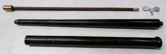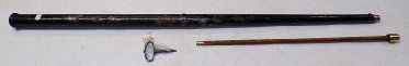THIS OLD AIRCANE HAS A FAIR PERCENTAGE OF ITS ORIGINAL BLACK JAPANNED FINISH AND WHAT WOULD APPEAR TO BE IT ORIGINAL SCREW OFF FERRULE/RAMROD ACCOMPANIED BY A MORE MODERN KEY WHICH IS A BIT ROUNDED OFF AND FAILS TO COCK THE TRIGGER MECHANISM WHICH SEEMS A BIT SEIZED ANYWAY SO AS PER WITH ALL ANTIQUE AIRGUNS THIS IS OFFERED AS AN ORNAMENT OR CURIOSITY OR FOR SPARES ONLY. NO MAKER’S NAME.