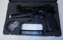 They only made 1200 of this variant of the P38, beautiful gold colour barrel, silver colour frame and white grips. Up to 3j power, holds 20 rounds of ammo. Boxed with instructions.